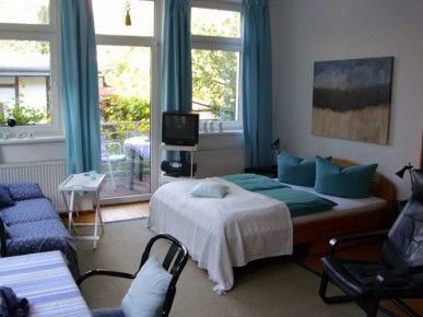 Es steht Ihnen ein ca. 30 qm großes Einzimmerappartement, mit Doppelbett und eingebauter Pantryküche, sowie extra Duschbad/WC zur Verfügung. Die Wohnung hat einen Balkon, der zum Bauerngarten liegt. Die Wohnung ist hell, modern eingerichtet und verfügt über Kabel-TV.