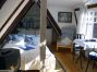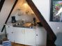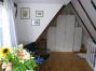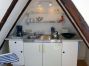 Auch dieses Appartement hat eine Größe von ca. 30 qm und ist eine Dachgeschosswohnung mit eingebauter Küchenzeile. Im Untergeschoss befindet sich der Flur und das Duschbad /WC. Eine Treppe führt hinauf in die Wohnung. Diese Wohnung ist ebenfalls hell, modern und gemütlich eingerichtet. Sie ist ausgestattet mit einem Doppelbett. Da die Treppe relativ steil ist, ist diese Wohnung jedoch nur für Gäste geeignet, die mit dem Treppensteigen keine Schwierigkeiten haben.